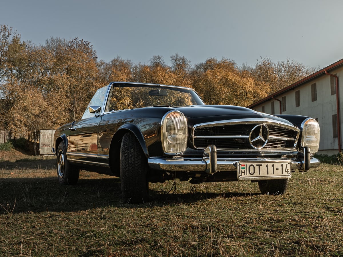 The Mercedes-Benz W113 SL, affectionately known as the “Pagoda,” stands as one of the most iconic Mercedes sports roadsters of the late 1960s and early 1970s. Production began in 1963, and during its less than ten-year production run, only 23,885 units were built. The 280 SL was the most powerful version of the series, equipped with a 2.8-liter inline-six engine capable of producing an impressive 170 horsepower. These models were not only stunningly beautiful but also remarkably dynamic for their time. The model also has a Hungarian connection, as among its designers — alongside Friedrich Geiger and Paul Bracq — was Béla Barényi, the legendary Hungarian-Austrian engineer who played a key role in the development of modern automotive safety concepts. The W113 earned its “Pagoda” nickname from its distinctive, slightly concave hardtop roof design. With its precise suspension, balanced performance, and finely crafted interior, the 280 SL managed to embody both the sportiness of a true roadster and the refinement of a luxury grand tourer. A true automotive icon, the W113 “Pagoda” remains one of the most celebrated and collectible Mercedes-Benz classics to this day. The car presented at the auction is a 1969 Mercedes-Benz 280 SL. The vehicle has undergone a comprehensive restoration, fully documented with photographs. Since its restoration, the car has covered only 1,910 kilometers. Original factory spot welds are still visible on the body. Power comes from a 2.8-liter inline-six engine, driving the rear wheels through a 4-speed automatic transmission. The car is left-hand drive. The overall condition of the vehicle is excellent. It has been completely restored, although it was already in remarkably good condition prior to the restoration. The car requires no body or paintwork repairs, and every part of the interior — including all surfaces and materials — is intact and in perfect condition. Mechanically, the vehicle is flawless, requiring no maintenance or repairs. The transmission shifts smoothly without any unwanted noise, the engine emits no blue or white smoke, and no rust is present anywhere on the car. Being one of the most iconic coupe the Pagoda is a really favoured investment amongst collectors.